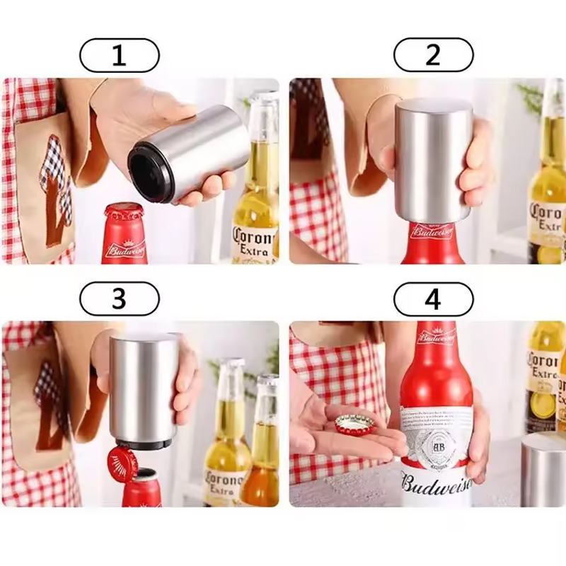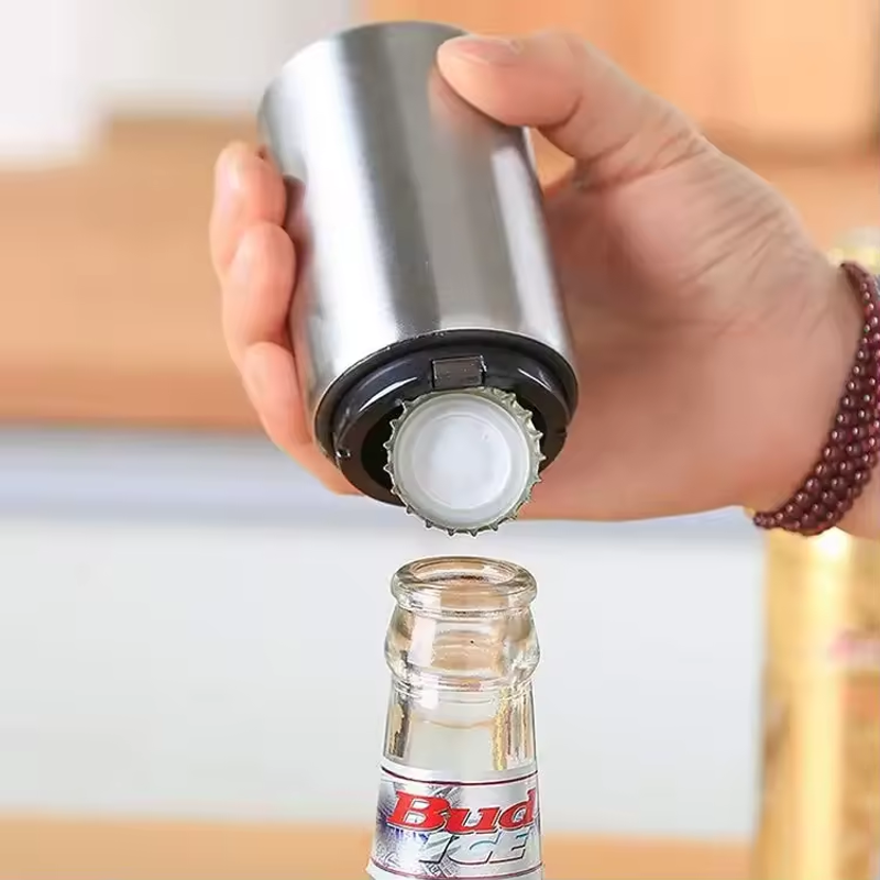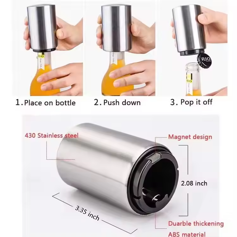 Abridor de garrafas de cerveja automático portátil e sustentável, em metal, aço inoxidável, logótipo personalizável, prensa para vinho, tampa magnética, venda imperdível